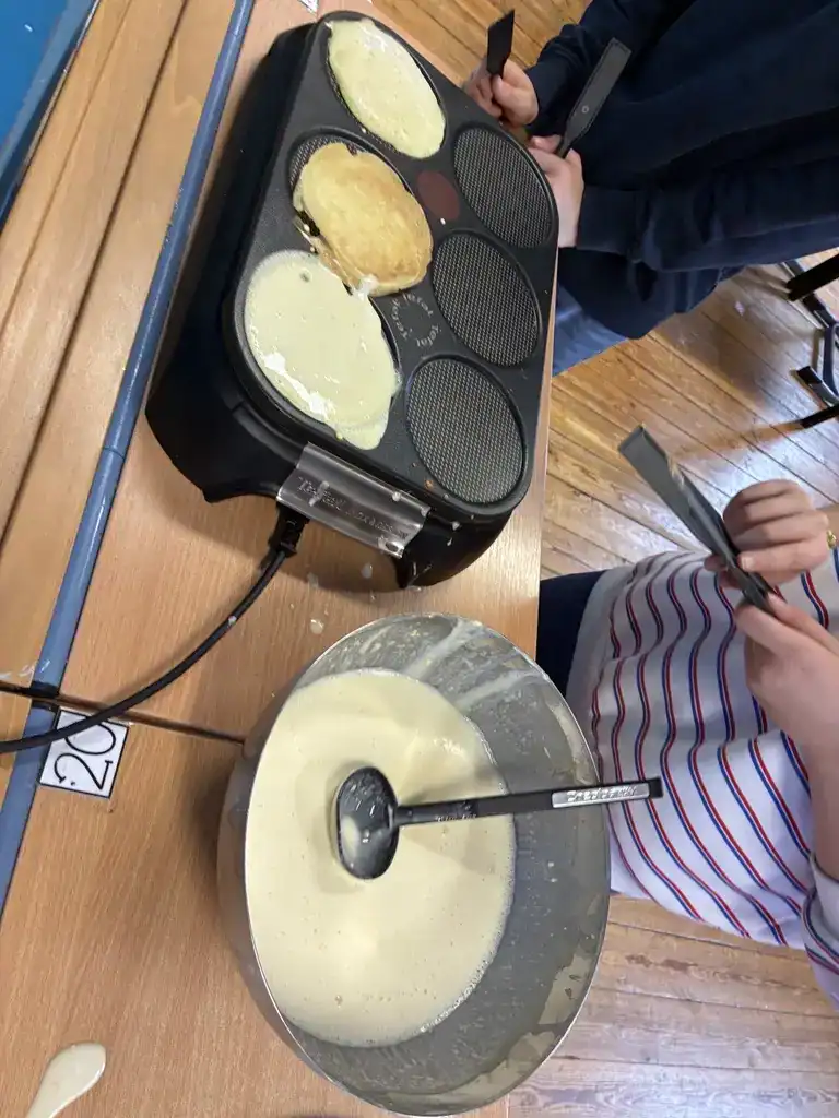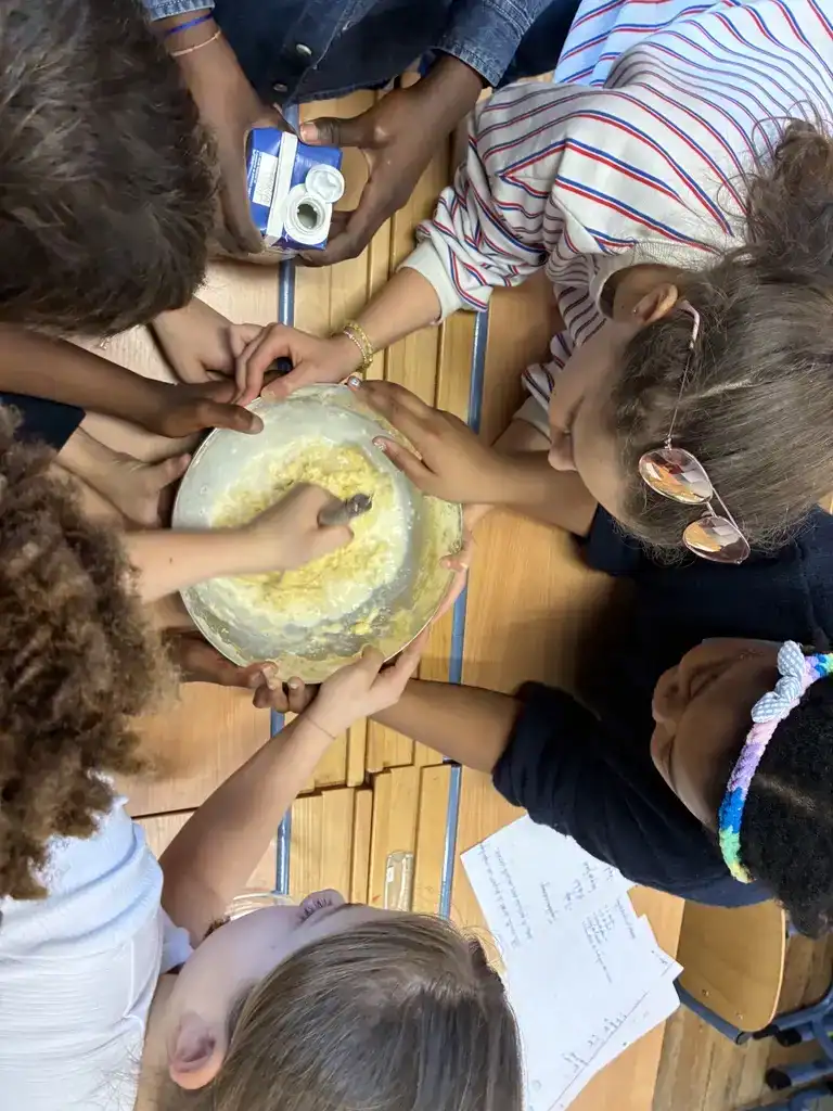 Mais ce n’est pas tout ! Les mathématiques se sont également invitées en cuisine : les élèves ont utilisé la règle de trois pour adapter les quantités et vérifier les proportions. Il fallait s’assurer que chaque copain puisse déguster sa crêpe ! Une excellente occasion de travailler la proportionnalité dans une situation concrète et motivante.